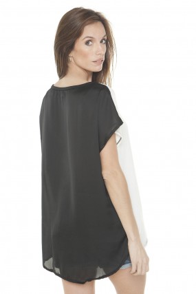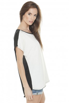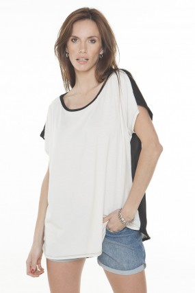 Remera Block combinada frente de jersey con gasa crepe en espalda.