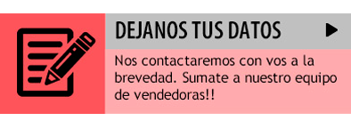 Te invitamos a sumarte a nuestro equipo de revendedoras independientes, tanto residas en capital federal como en el interior del país podes comenzar a vender ahora mismo con una inversión mínima. Como fabricantes de indumentaria femenina contamos con un sistema de incentivos para nuestras mejores vendedoras. Contáctanos y empeza a vender!
